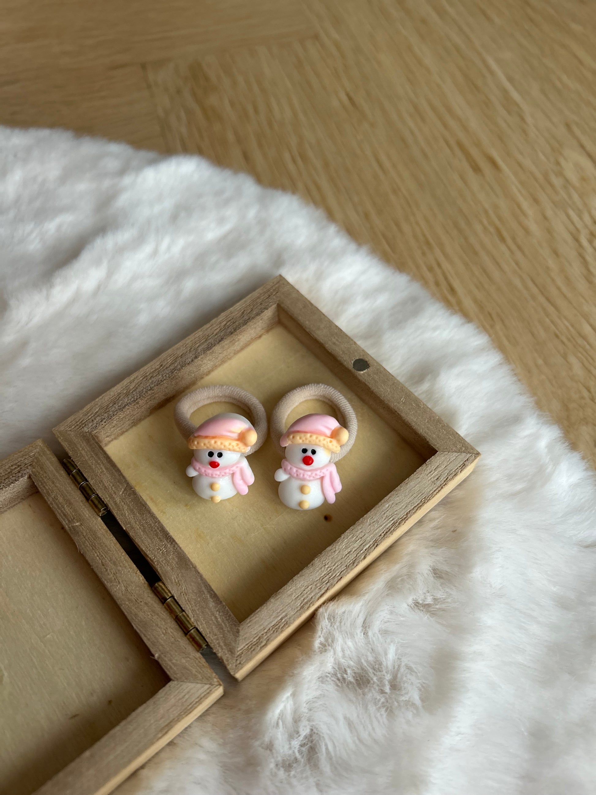 Hoe schattig zijn deze snowgirl elastiekjes? Met hun zachte roze mutsje en sjaaltje zijn ze perfect voor kerst, winterfeestjes en de mooiste decemberoutfits.