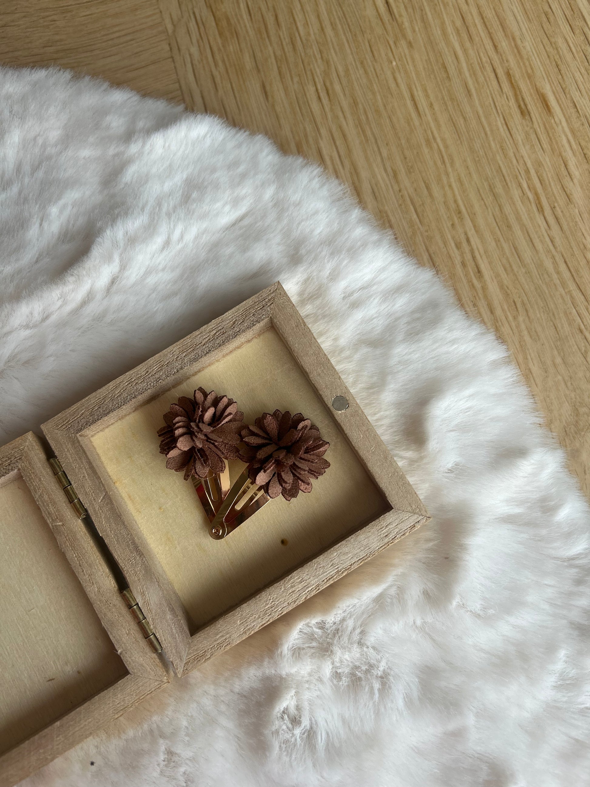 Voeg een feestelijke en lieve touch toe aan elk kapseltje met deze schattige bloemenclipjes. De zachte suède-look bloemetjes geven een warme, winterse uitstraling—perfect voor de feestdagen, kerstfoto’s en speciale gelegenheden!