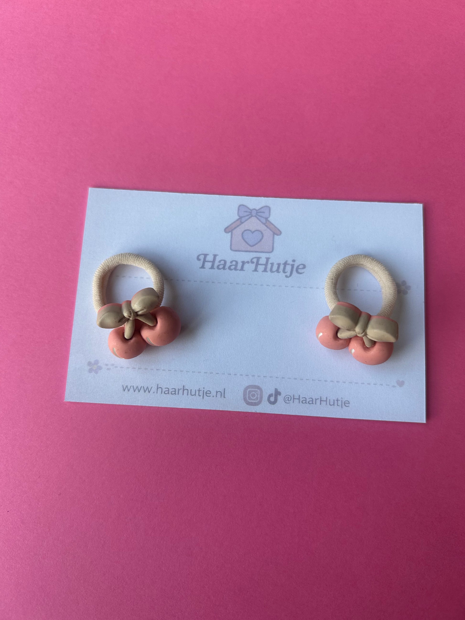 Deze handgemaakte kers elastiekjes zijn perfect voor kleine fruitliefhebbers. Ze geven elke staart of vlecht een speelse en vrolijke uitstraling.